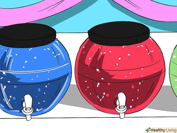 Виберіть напої. у випадку дитячих і підліткових вечірок обов'язково придбайте більше напоїв, ніж, як ви вважаєте, може знадобитися, так як вони дуже швидко розходяться. Не давайте дітям кофеїновмісні напої, їх батьки будуть Вам за це вдячні. Для дорослих вечірок обов'язково передбачте безалкогольні напої, а ємності з алкогольними напоями та коктейлями підпишіть, щоб не виникло плутанини.- Обов'язково майте додатковий запас келихів або склянок. Тоді вам не доведеться бігти за ними в магазин посеред вечірки.