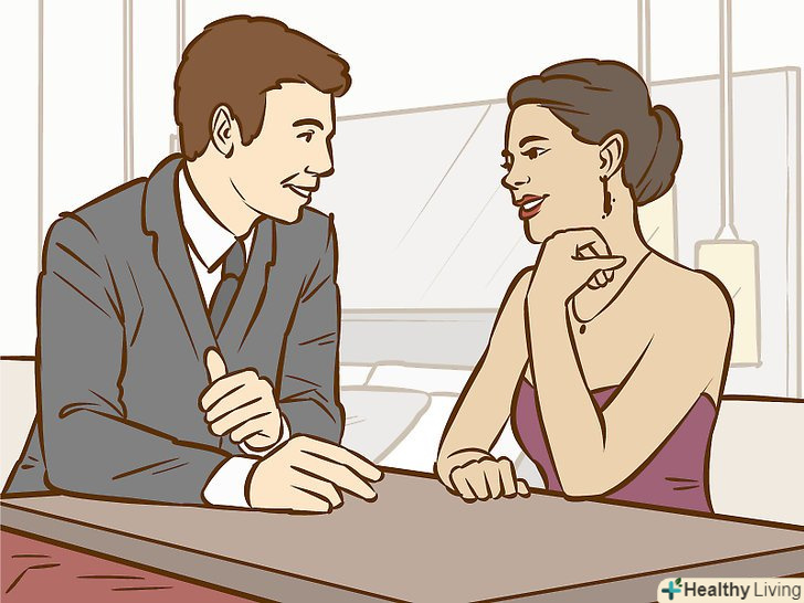 Виберіть такий столик, щоб знаходиться поруч з партнером. забронюйте столик на двох або окрему кабінку. Сідайте навпроти партнера, щоб дивитися в очі, або з тієї ж сторони столика, щоб перебувати ближче. [7]