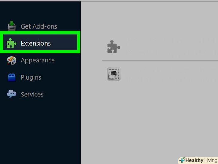 Клацніть поРозширення.ця опція знаходиться у спливаючому меню. Відкриється сторінка "Розширення".