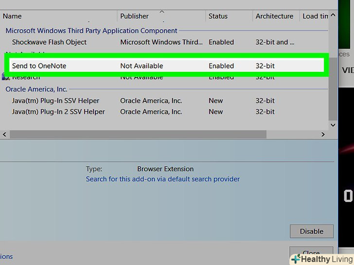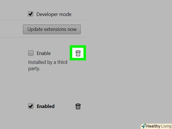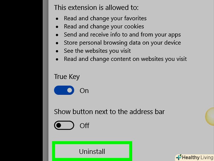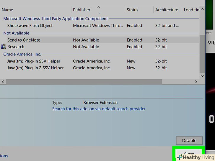 Клацніть поВидалити або Відключити.вибір кнопки залежить від типу панелі інструментів; наприклад, панель інструментів від компанії Microsoft можна тільки відключити, але не видалити.- Сторонні панелі інструментів можна повністю видалити, якщо натиснути "Видалити".