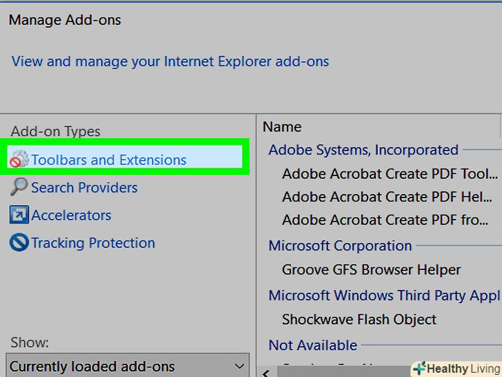 Клацніть по вкладціПанелі інструментів і розширення.вона знаходиться в лівій частині вікна "надбудови".