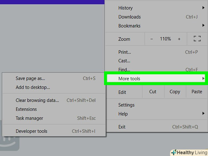 ВиберітьДодаткові інструменти. ця опція знаходиться в нижній частині меню, що випадає. Відкриється спливаюче меню.