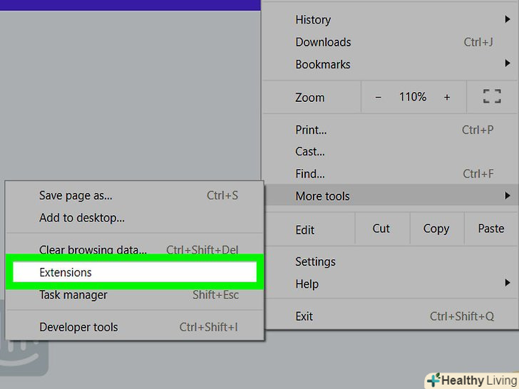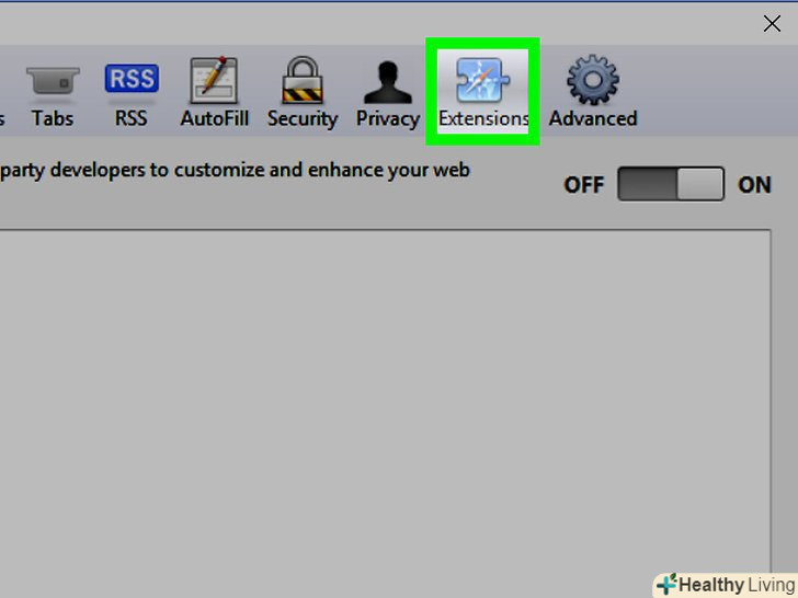 Клацніть по вкладціРозширення. вона знаходиться праворуч у верхній частині спливаючого вікна.