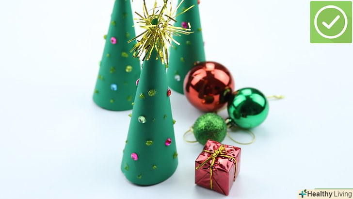 Підготуйте необхідні матеріали. ця новорічна ялинка складається з простого паперового конуса і прикрас, а прикраси залежать від вашого бажання. Подібні Ялинки можуть бути будь-якого розміру, візьміть будь-який папір для творчості, яка у вас є.- Папір для творчості. Використовуйте зелений картон для традиційної ялинки, або будь-який інший папір для творчості або пакувальний папір, навіть з візерунками, для створення модної сучасної ялинки. Не беріть тонкий папір.