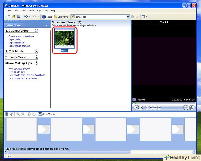 - Вкажіть диск, на якому знаходиться відео, а також директорію. Виберіть ваш файл і натисніть ОК або відкрити для імпорту в Movie Maker. Ваше відео з'явиться в категорії збірки. Категорія знаходиться над шкалою часу.
