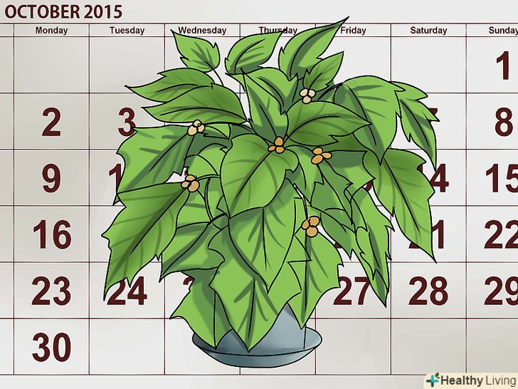 З настанням осіннього сезону, листя рослини почнуть червоніти (або рожевіти, в залежності від типу рослини). цей процес може зайняти до 2 місяців, а іноді і більше, в залежності від умов зростання і різновиди рослини.- Замініть азотне добриво добривом для домашніх рослин або спеціально для пуансеттій, і почніть рідше удобрювати рослину.