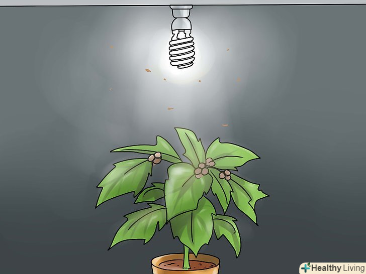 Використовуйте теплий білий світло ламп або флуоресцентні лампи. важливо, щоб світло було білим і теплим, а не звичайним, так як рослині потрібно більше червоного світла, що гарантує вам повноцінне цвітіння.- Переконайтеся, що світла достатньо. Однієї лампочки на 26 ВАТ (еквівалентно 100 Ват) для двох і більше рослин буде достатньо. Використовуйте одну лампочку на 26 ВАТ для відростків висотою 45 см.переконайтеся, що Ви можете прикріпити лампу на потрібній висоті, так як це прискорить цвітіння рослини.