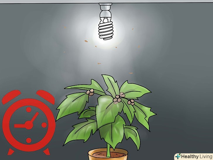 Слідкуйте за часом. Хорошим варіантом буде включати світло з 9 ранку до 5 вечора. Не тривожте рослину, коли світло вимкнено. Хоча 14 годин темряви цілком достатньо, якщо ви використовуєте теплий білий світ, то краще тримати рослину в темряві 16 годин.