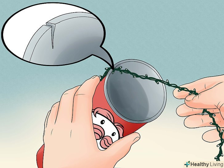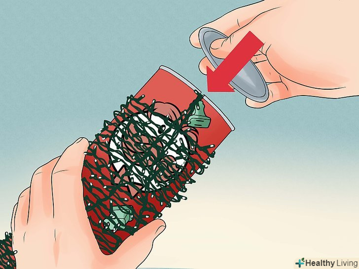 Намотайте гірлянду на банку. намотуйте гірлянду навколо банки, кладучи витки один до іншого зверху вниз. Дійшовши до низу, почніть намотувати гірлянду знизу вгору. Заправте вільний кінець гірлянди в ту ж проріз нагорі банки. Результат: вся гірлянда намотана на банку, обидва кінці заправлені в проріз. [5]