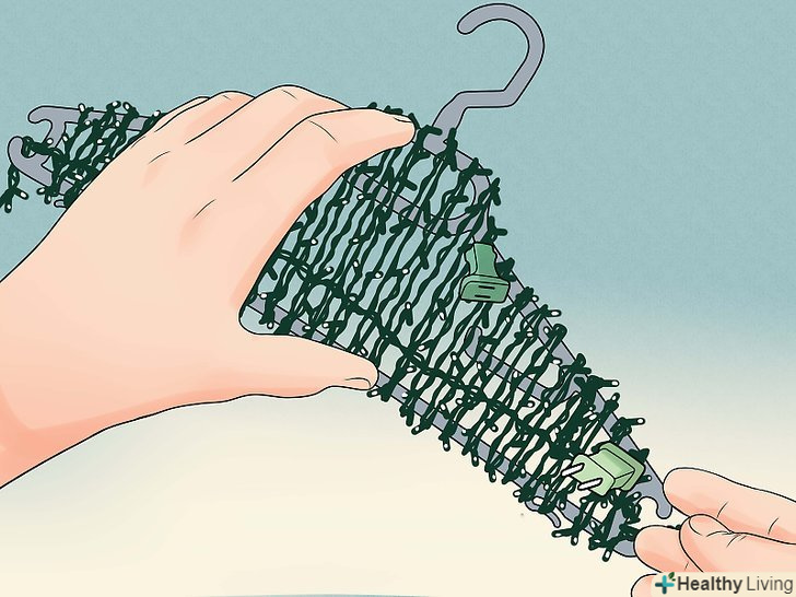 Заправте вільний кінець гірлянди в протилежний гачок. переконайтеся, що довжини гірлянди вистачає, щоб її вільний кінець діставав до гачка. [8]- Якщо вільний гачок опинився під гірляндою або ваші плічка не мають гачків, просто заправте вільний кінець між витками гірлянди.