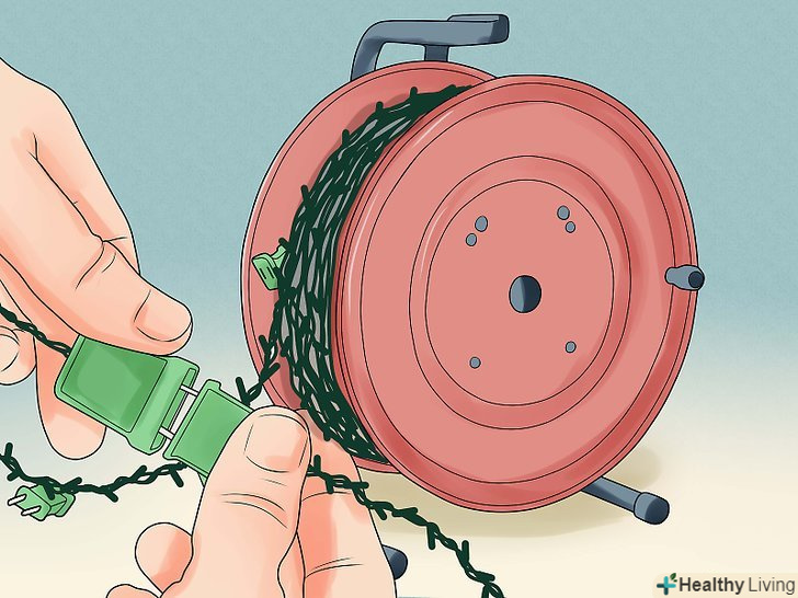 Якщо у вас кілька гірлянд, їх можна намотати на одну котушку і зберігати разом. Просто застроміть вилку від наступної гірлянди в роз'єм попередньої і намотуйте гірлянди, поки на котушці залишається місце. [10]