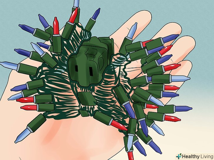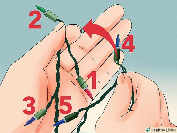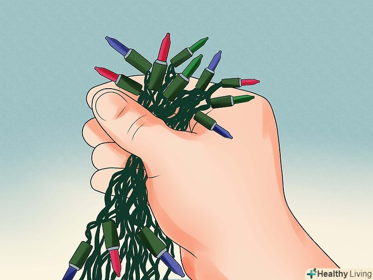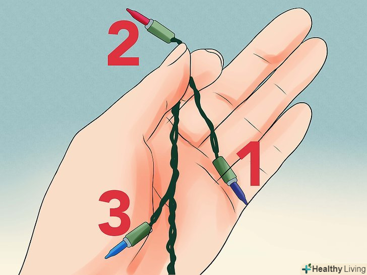 Візьміть другу з краю лампочку гірлянди вказівним і великим пальцями. при цьому перша і третя лампочка виявляться у вас на долоні приблизно на одному рівні. [11]