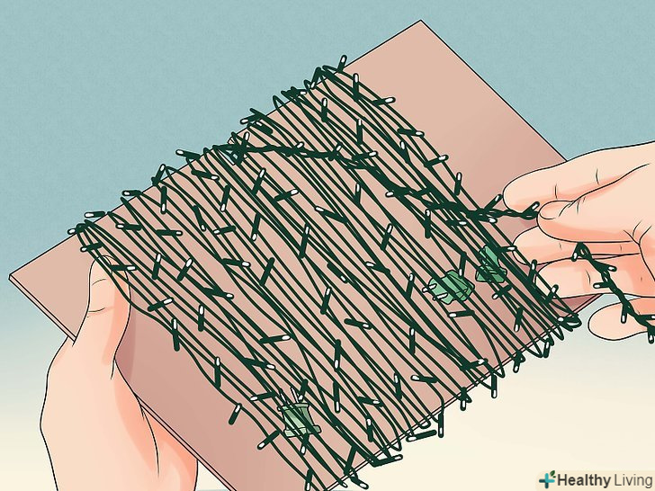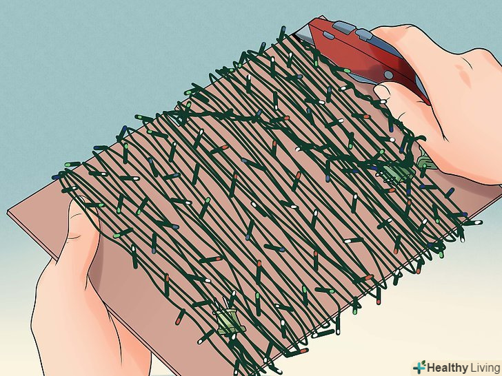 Коли вся гірлянда змотана, зробіть ще одну проріз на шматку картону в тому місці, де знаходиться вільний кінець гірлянди. заправте кінець гірлянди в проріз. [2]