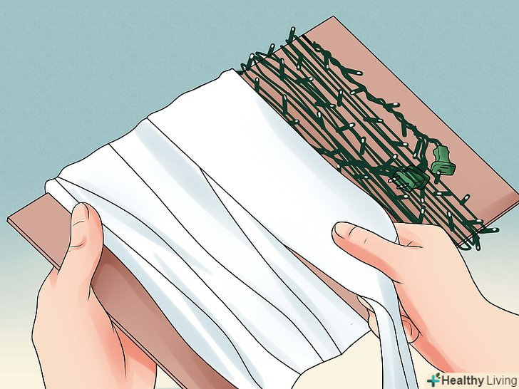 Загорніть шматок картону з намотаною на нього гірляндою в папір. щоб під час зберігання не пошкодити лампочки на гірлянді, оберніть картон декількома шарами пакувального паперу або газети. [3]