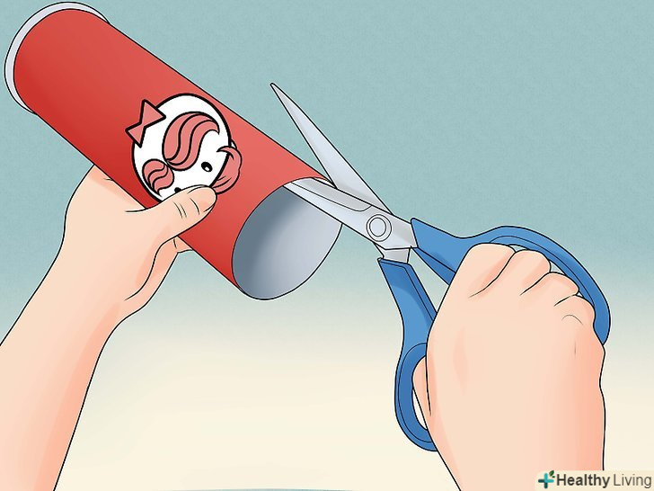 Зробіть надріз на верхньому краю банки. за допомогою господарських ножиць зробіть на верхньому краю банки вертикальний надріз довжиною приблизно 5 см. [4]