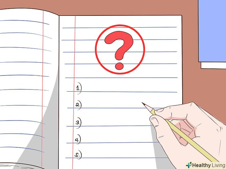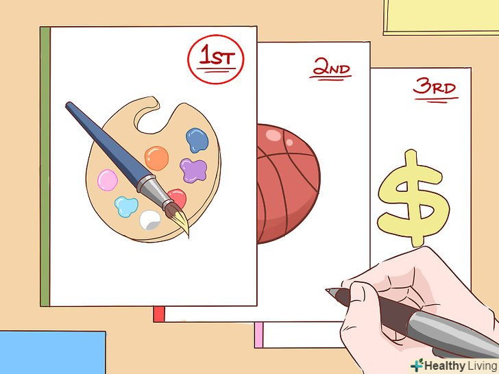 Складіть список з 20-50 речей, які потрібно спробувати в майбутньому році. через деякий час після початку року сядьте з зошитом і напишіть кілька речей, які хочете зробити протягом року. Вибирайте прості, нескладні речі, наприклад, «їсти більше овочів» або конкретні, реалістичні цілі, такі як «відновитися в університеті». Додайте стільки пунктів до свого списку, скільки вважаєте за необхідне, і викреслюйте їх у міру виконання протягом року. Список являє собою візуальний Орієнтир, корисний при спробі встановити цілі. [9]- Ви можете використовувати цей список, щоб знайти ідеї для щомісячного виклику «спробувати щось нове».