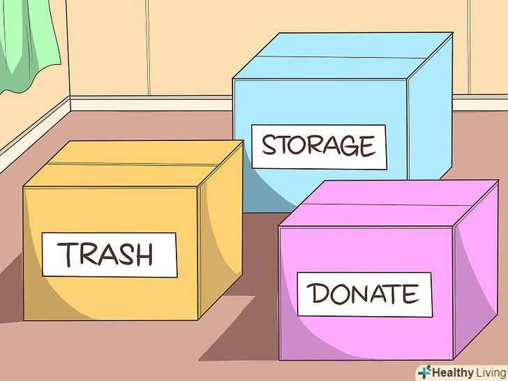 Розсортуйте свій одяг і позбудьтеся від речей, які рідко носите. Новий рік-це відмінний час, щоб провести інвентаризацію свого гардеробу і позбутися від речей, які більше не підходять вашій фігурі або вашому стилю. Дістаньте одяг з кожного ящика і зробіть одну стопку для одягу, яку збережете, і іншу — для одягу, якій потрібно знайти новий притулок. Потім акуратно складіть речі і поверніть їх в комод або шафу. Так ви очистите простір від мотлоху і освіжите свій стиль. [7]- Після того, як ви створите стопку речей «для нового притулку», подумайте про те, щоб віддати їх своїм друзям, членам сім'ї або пожертвувати в комісійний магазин.
