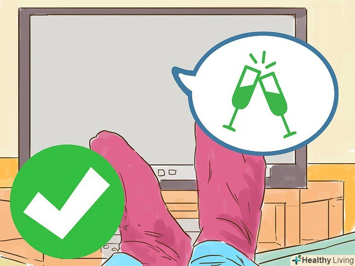 Закотіть вечірку на одного. розташуйтеся вдома і влаштуйте святкування на свій смак. Приготуйте свої улюблені закуски, випийте трохи шампанського і подивіться святкові трансляції з усього світу по телевізору. Це прекрасний час, щоб дійсно побалувати себе і купити собі те, на що зазвичай шкода грошей. Обов'язково наведіть порядок в будинку і прикрасьте його всім, що зможете знайти. Навіть якщо ви просто запалите свічки, простір миттєво перетвориться.