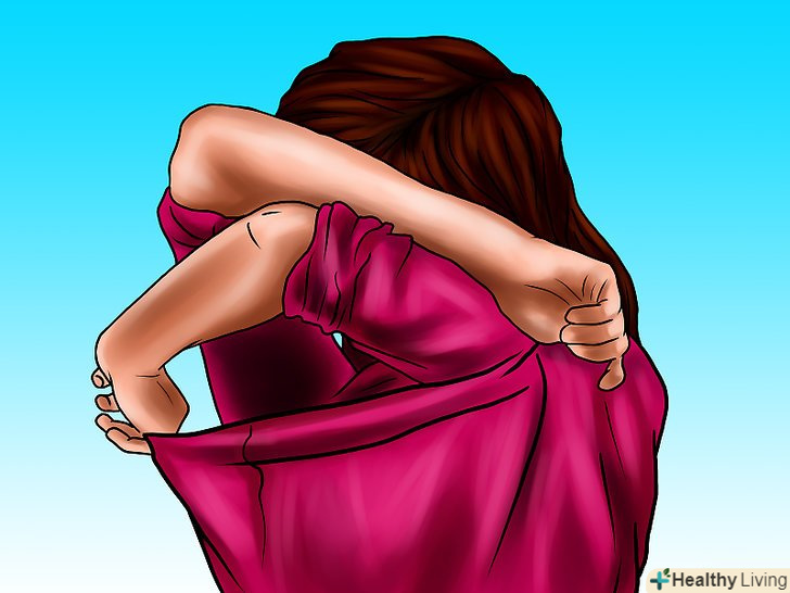 Покладіть руки на рукави (вам знадобиться зігнутися і звідси трохи практики) так, щоб ваші руки були всередині футболки, а потім просто плавно зніміть її через голову.- Щоб зняти майку на тонких бретелях, спершу необхідно зняти бретелі з плечей і повільно спустити її до ніг або через голову.