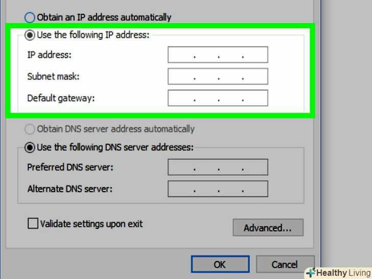 Налаштуйте мережу на комп'ютерах.зайдіть в Налаштування інтернету (це залежить від операційної системи) і далі в діалог, який приведе вас до змін TCP/IP протоколу. Змініть спосіб отримання IP-адрес з "Отримати IP-адресу автоматично" На " використовувати дану IP-адресу:". Впишіть потрібні IP-адреси на ваших комп'ютерах з відповідною маскою підмережі (для класу С - 255.255.255.0). Якщо ви не використовуєте роутери, то залиште поля "мережевий шлюз" і "DNS сервер" порожніми. Якщо ви використовуєте більше, ніж один роутер, подивіться в секцію важливі замітки. Якщо ви конфігуруєте домашню мережу з відносно новим роутером, то вам не потрібно читати дану секцію, якщо ваша мережа налаштована правильно. Роутер призначить потрібні IP-адреси вашим пристроям і пристроям, які намагаються зв'язатися з комп'ютерами у вашій мережі.