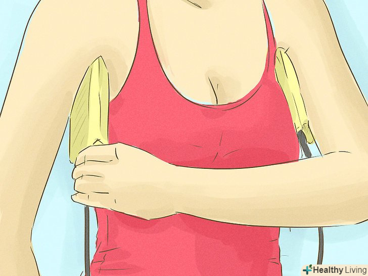 Голіть пахви. якщо у вас підвищене потовиділення, в якійсь мірі гоління під пахвами допоможе. При цьому пітливість не зменшиться, проте під пахвами буде накопичуватися менше поту, а запах і плями будуть менш вираженими.- Важливо знати, що в жаркий час, у міру того як ми потіємо, волосся на тілі допомагають увібрати вологу з шкіри, охолоджуючи нас. Тому, з одного боку, якщо ви голите пахви, ви попереджаєте появу бактерій, проте відсутність волосся сприяє виділенню поту, так як організм не охолоджується належним чином.