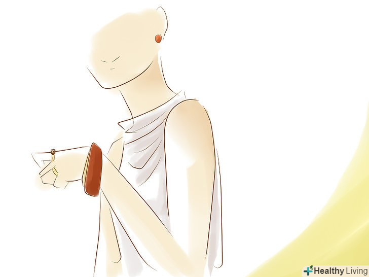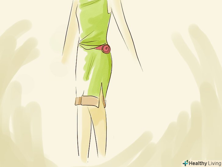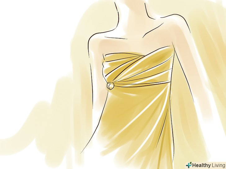 Зав'язуйте шарф або бандану, як верхню частину гардеробу. добре виходить з шарфами від Hermes або іншими квадратними хустками. Жінки з невеликими достоїнствами можуть легко виконати подібне, зате великий бюст може "випасти" з такої кофтинки. Багато з таких стилів слід носити без бюстгальтера, ця друга причина, по якій він краще для дрібних форм.- Носіть шарф, як щільний поводок. Поверніть хустку навпіл, щоб він став схожий на трикутник. Зв'яжіть два кінці навколо талії, а верхівку зав'яжіть навколо шиї.