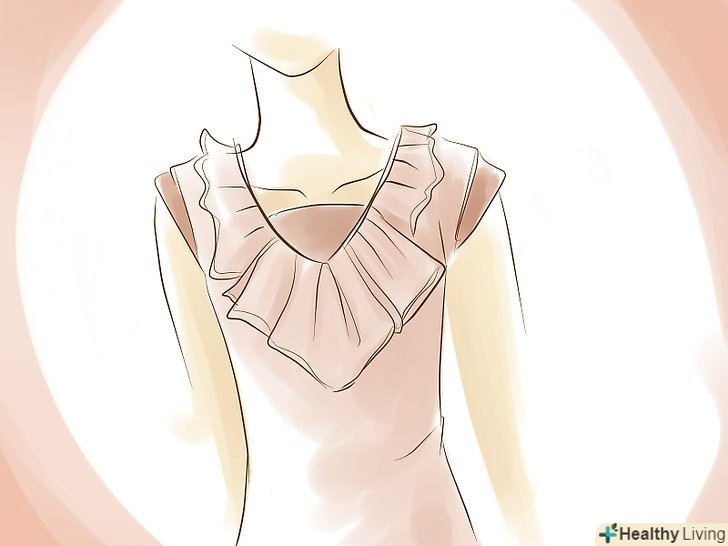 Одягайте блузки або сукні з мереживами або зі складками, особливо ті, які прикрашають виріз. такі речі додають об'єм, не пригнічуючи фігуру.