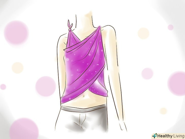 - Або одягайте як топ Без рукавів. Поверніть два протилежні кути в центр шарфа. Обв'яжіть його навколо себе, складеними краями наверх.
