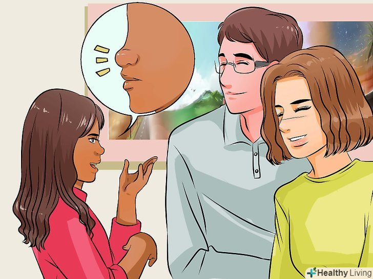 Перенаправте увагу на інших. занепокоєння про те, як виглядає ваш ніс, буде витрачати вашу цінну інтелектуальну діяльність. Людям ви сподобаєтеся незалежно від вашого носа, якщо ви будете їх слухати. [10]- Одним із способів, щоб переконатися в тому, що увага іншої людини не загострено на вашому носі, є переклад теми розмови на неї або Нього. Кожен чимось пишається, наприклад, своєю професією, сім'єю, приналежністю до церкви або вірою. Якщо ви турбуєтеся, що ця людина помітив ваш ніс, то уважно вислухайте, чим саме пишається ця людина. [11] . Як тільки ви визначите предмет гордості, зробіть йому комплімент. Якщо можливо, нехай це буде звучати як дружня жарт. [12]