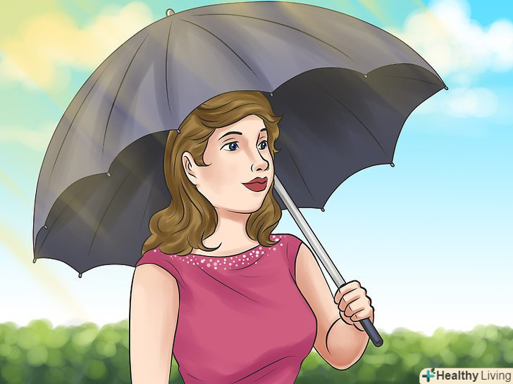 Захищайте шкіру від сонця. в результаті впливу ультрафіолетового випромінювання руйнуються волокна колагену і еластину (які роблять шкіру пружною), що прискорює процес старіння шкіри. Якщо проводити багато часу на сонці, шкіра буде старіти швидше, тому слід обмежувати своє перебування на сонці. [19]- Використовуйте сонцезахисний засіб широкого спектру з великим значенням SPF щодня.
