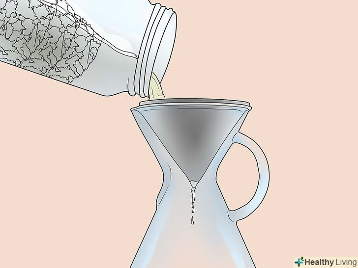 Процідіть вміст банки через ситечко в порожню банку. викиньте листя евкаліпта.