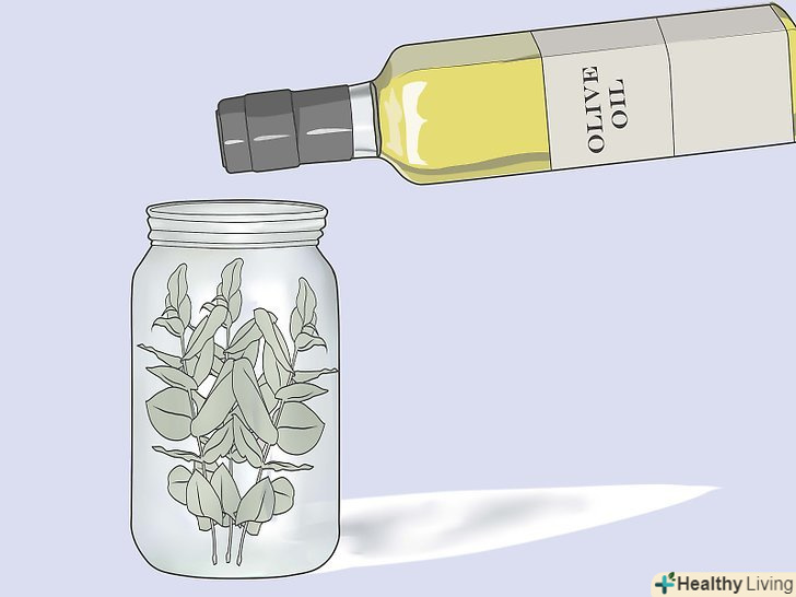 Залийте розчавлені листя оливковою олією. закрийте кришку і гарненько потрясіть банку, щоб змішати листя з маслом.