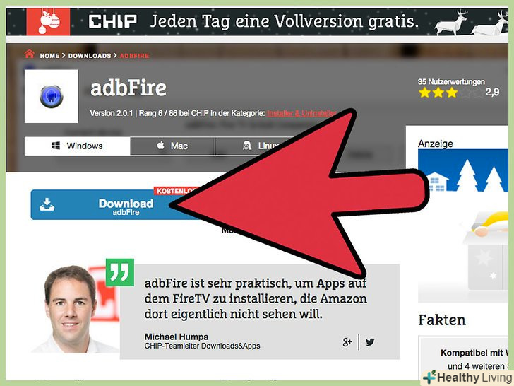 Скачайте Aftv Toolkit.на даний момент існують дві основні утиліти для завантаження сторонніх додатків на Amazon Fire TV-Amazon Fire TV Utility App і додаток adbFire. Додаток ADB Fire доступний для Windows, Mac і Linux, в той час як Amazon Fire TV Utility працює тільки на Windows. Залежно від ваших уподобань, можете використовувати будь-який із зазначених додатків. Я використовую обидва, оскільки кожен має свої унікальні можливості. На Windows скачайте одне з додатків і розархівуйте його в окрему папку на диску С. Тут ми покажемо, як використовувати Fire TV Utility App.