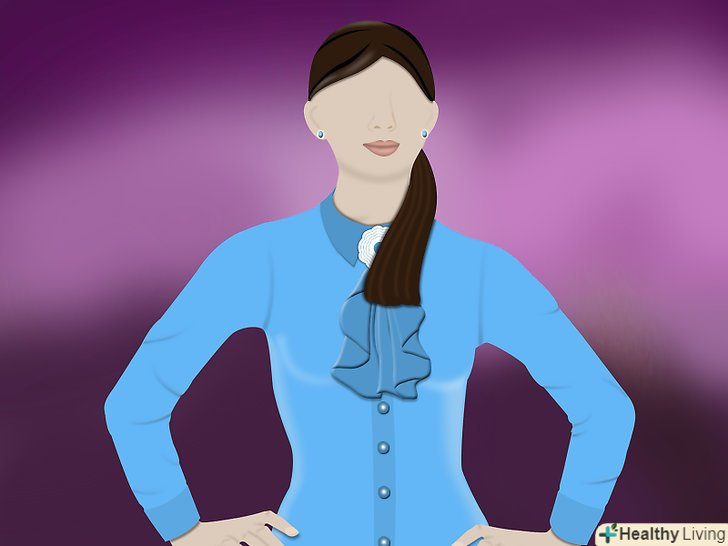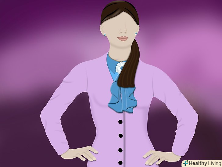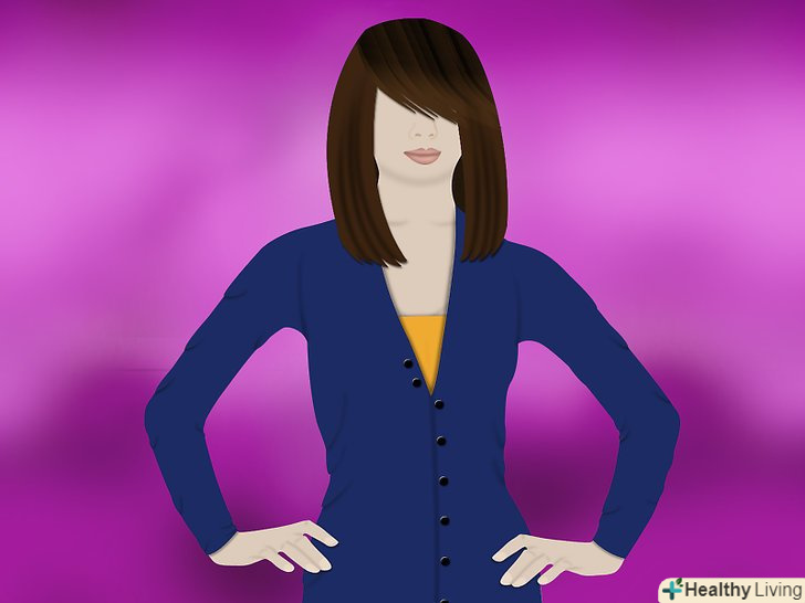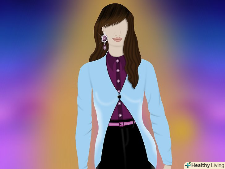 Одягніть кардиган і або залиште його незастебнутим, або застебніть одну гудзик посередині. переконайтеся, що передня лінія заправки вашої блузки видима з-під кардигани.