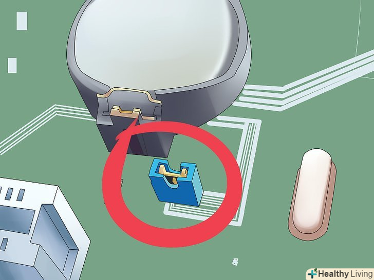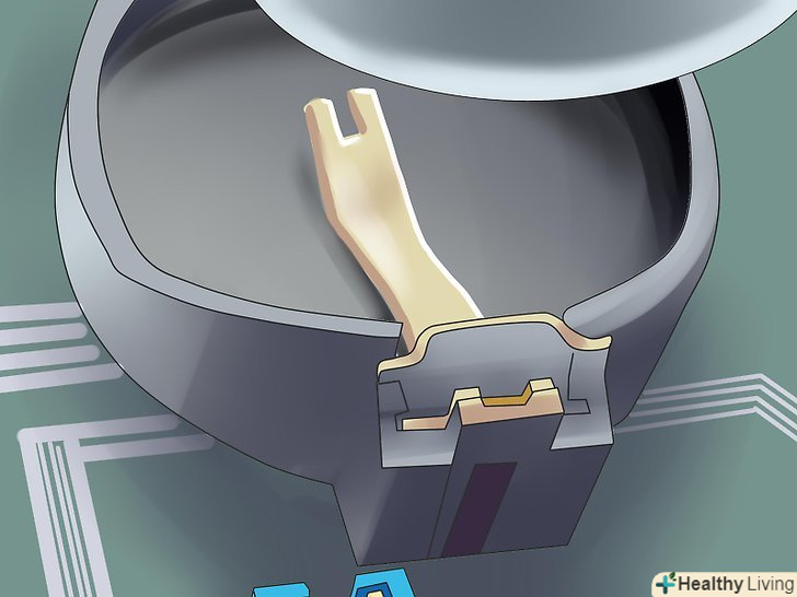 Знайдіть CMOS-батарейку.це маленька кругла (»кнопкова") батарейка, подібна до тих, які ставляться в годинник.- Якщо ви не можете знайти CMOS-батарейку, скиньте пароль до BIOS за допомогоюперемички.