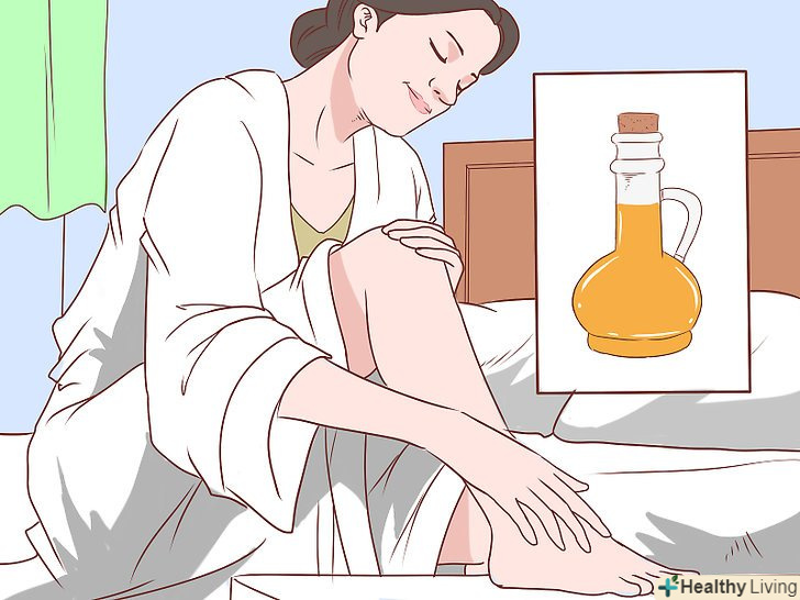 Намажте липку область рослинним маслом. кілька крапель оливкової, ріпакової, кокосової, кукурудзяної або соняшникової олії можуть допомогти прибрати клейкий склад з шкіри. Деякі клейкі склади легко розчиняються в маслі. Інші склади втрачають свою можливість липнути до шкіри, якщо маслу вдається потрапити між шкірою і клеєм. [2]- Для найкращого результату нанесіть масло на ватний диск або серветку. Обережно нанесіть масло на липку ділянку на шкірі. Достатньо лише невеликої кількості масла, адже ваше завдання-нанести невеликий шар масла на шкіру, а не залити її. Залиште масло на деякий час, щоб воно встигло подіяти, а потім акуратно потріть шкіру серветкою або ватним диском. Якщо клей до кінця не відійшов, повторіть процедуру.