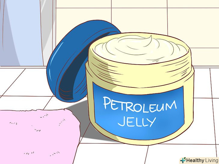 Нанесіть вазелін. засоби, що містять вазелін, діють аналогічно оліям і зволожуючим лосьйонам, і можуть видаляти з шкіри липкий шар. Зручність вазеліну в порівнянні з маслом полягає в тому, що він дуже густий, тому його набагато простіше нанести і залишити на тривалий час (хоча він може бути неприємний через те, що є таким жирним). Просто нанесіть тонкий шар вазеліну на шкіру, на якій є клей, залиште на десять хвилин, а потім видаліть разом з липким шаром лейкопластиру за допомогою паперового рушника або м'якого шматка тканини.