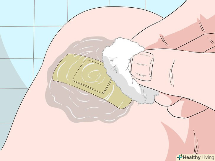 Прийміть теплу ванну. Тепло і волога роблять клей від лейкопластиру більш податливим. [1] Одним з найпростіших способів видалення залишків клею від лейкопластиру є його замочування області в теплій воді — найпростіше буде при цьому прийняти ванну або душ. Клей може відійти сам по собі, або ви можете злегка потерти місце, де був наклеєний пластир, мочалкою або м'якою щіткою.- Якщо у вас немає часу приймати ванну або душ, то ви можете просто наповнити відро або каструлю теплою водою і помістити липку область в воду для відмочування. Цей метод може бути найбільш зручним, якщо у вас є час відмочувати липку область протягом тривалого часу, наприклад, якщо ви читаєте або дивитеся телевізор.
