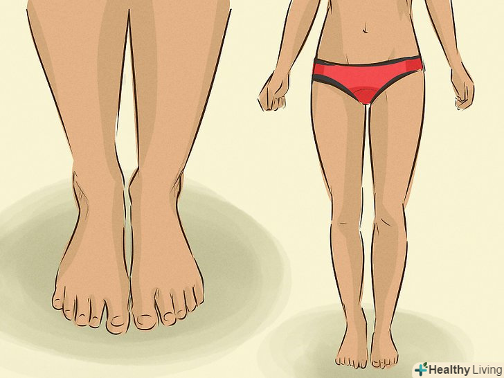 Поставте ноги разом. розставлені ноги можуть привести до того, що знята мірка виявиться більше, ніж ваш реальний обсяг стегон. Тому для зняття мірки вам необхідно поставити ноги разом. В крайньому випадку, ноги не повинні бути розставлені ширше плечей, але краще буде поставити їх разом. [3]