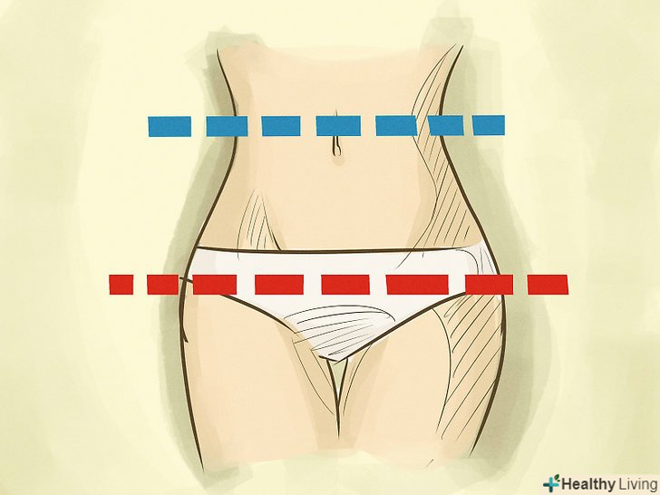 Зрозумійте різницю між талією і стегнами. природна талія – це найвужча і запала частина торсу. Стегна розташовуються нижче талії і зазвичай бувають ширше неї. У вимірі обсягу стегон враховуються стегна і сідниці. [4]