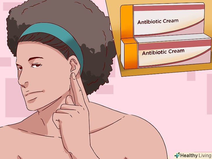 Нанесіть на місця проколу антибіотичний крем або розчин, який вам дали, коли ви проколювали вуха, особливо якщо у вас йде кров або якщо отвір затягнувся.