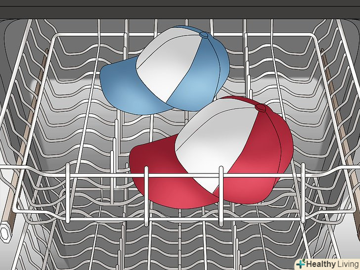 Встановіть короткий цикл без сушіння. встановіть найкоротший цикл посудомийної машини. Ніколи не використовуйте сушку, щоб кепка не втратила форму і не пом'ялася через підвищену температуру. [4] Встановіть короткий цикл без сушіння. встановіть найкоротший цикл посудомийної машини. Ніколи не використовуйте сушку, щоб кепка не втратила форму і не пом'ялася через підвищену температуру. [4]- Встановіть низьку температуру, якщо машина дозволяє регулювати такий параметр.