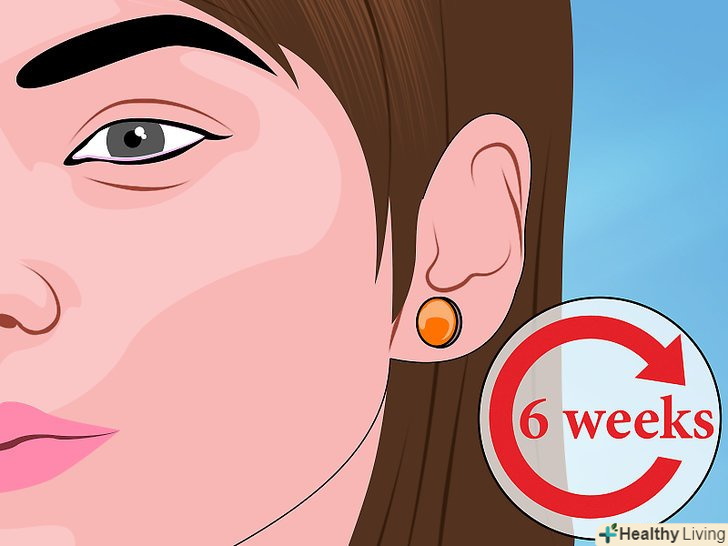 Носіть сережки протягом декількох тижнів. після того, як у вас знову відкрився прокол, почніть носити маленькі сережки-гвоздики (не знімаючи). Їх потрібно носити мінімум 6 тижнів. Якщо ви зніміть сережки на якийсь час, майте на увазі, що прокол може знову зарости. [12]