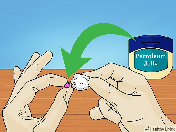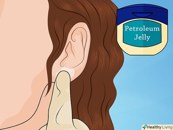 Змастіть мочку вуха. нанесіть велику кількість вазеліну або мазі з антибіотиком на мочку вуха, щоб змастити цю область і зменшити тертя. [5] пальцями акуратно нанесіть мазь на мочки вух. Тепло ваших рук сприяє пом'якшенню шкіри.
