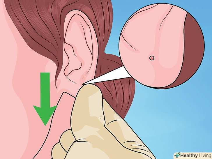 Помацайте задню частину мочки вуха. можливо, ви відчуєте невеликий вузлик на тому місці, де був прокол. Цей вузлик складається з мертвих клітин шкіри, які блокують цей прокол, коли він заживає.- Якщо отвір повністю заросло, можливо, вам доведеться звернутися за допомогою до фахівця, щоб знову можна було носити сережки. Майте на увазі, що час повного загоєння у кожного індивідуально. Ви можете кілька років не носити сережки, Але все одно зможете легко «розкрити» прокол в домашніх умовах, або цей прокол може повністю зарости вже через кілька місяців. [4]