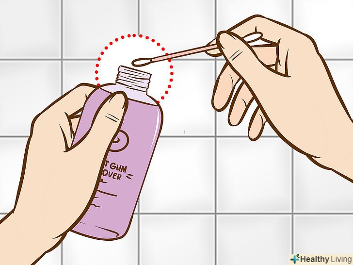 Змочіть ватяну паличку в засобі для видалення театрального клею. переконайтеся, що вата добре просочилася засобом. Не зривайте меркін відразу-ТЕАТРАЛЬНИЙ клей дуже міцний, і подібні дії можуть легко травмувати шкіру або зіпсувати сам меркін (особливо, якщо він зроблений зі справжніх волосся).- Тримайте під рукою кілька ватних паличок.