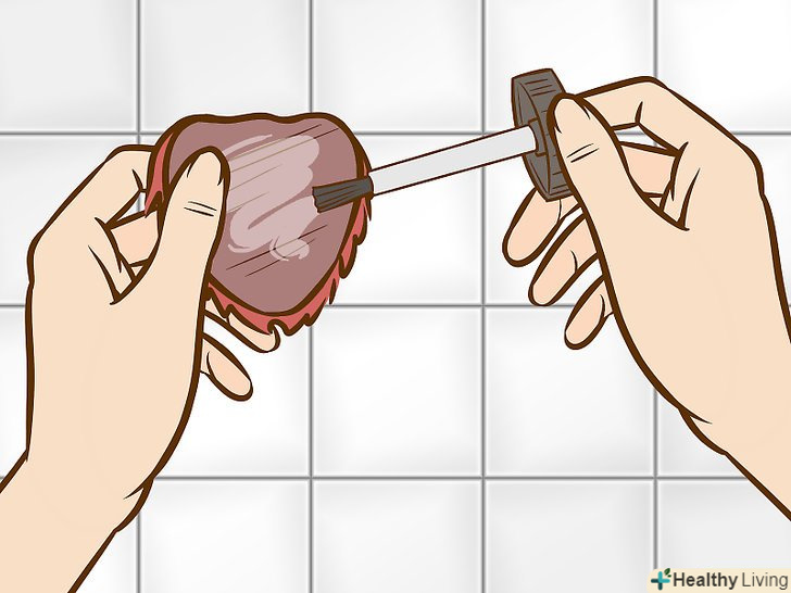 Очистіть меркін за допомогою засобу для видалення театрального клею. нанесіть деяку кількість розчинника на щітку з м'якою щетиною (це може бути стара зубна щітка). Акуратно протріть цією щіткою зворотну сторону меркіна, щоб видалити залишки клею. Якщо клей ніяк не йде, спробуйте видалити його за допомогою 90% розчину спирту. [6] робіть це до тих пір, поки не видалите весь клей повністю. Коли все буде готово, акуратно промокніть меркін, щоб висушити його.- Засіб для видалення театрального гриму може давати маслянистий залишок. Цей маслянистий залишок можна легко видалити ватним кулькою, змоченим в спирті.