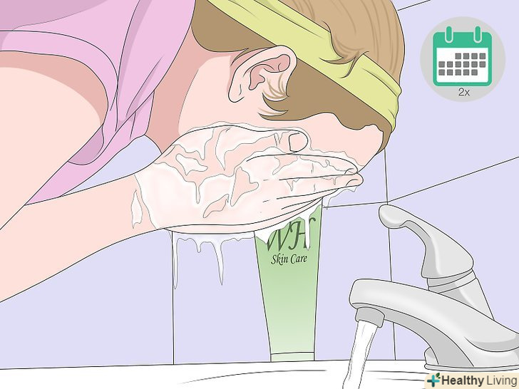 ВмивайтесяЯк мінімум два рази на день. Вмивайте обличчя теплою водою вранці після пробудження і ввечері перед сном. Використовуйте м'який засіб для вмивання. Його можна наносити пальцями або спеціальним спонжем. Нанесіть засіб на вологу шкіру, а потім змийте 3 і більше разів водою. Промокніть шкіру рушником і нанесіть зволожуючий крем на шкіру обличчя і шиї. [11]- Якщо у вас вугровий висип, підберіть засіб для вмивання проти акне. Після вмивання наносите на шкіру некомедогенное зволожуючий засіб, який не буде забивати пори і провокувати висип.