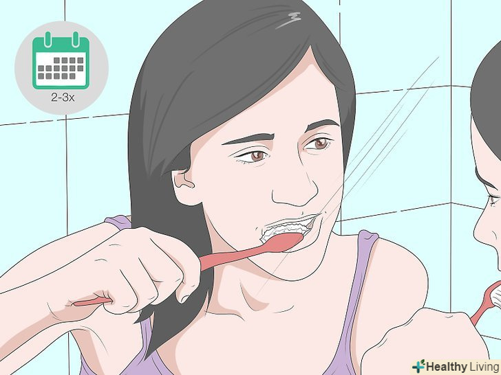 Чистіть зуби 2-3 рази на день. найкраще чистити зуби після кожного прийому їжі, щоб вони завжди були чистими, а дихання - свіжим. Але якщо це неможливо, досить чистити зуби вранці після пробудження і ввечері перед сном. Використовуйте зубну пасту з фтором і очищайте передні, задні і бічні поверхні зубів. Чистіть зуби 2 хвилини, а потім промивайте рот водою. [12]- Замінюйте щітку раз на три місяці.
