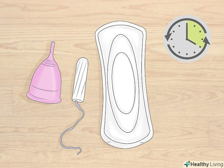 Міняйте тампон, прокладку або спорожняйте менструальну чашу кожні 4 години під час місячних. важливо міняти гігієнічний засіб регулярно, тому перевіряйте його стан при кожному відвідуванні туалету. Якщо воно наповнилося кров'ю, міняйте його. Це дозволить уникнути появи неприємних запахів і розвитку інфекцій. [13]- При тривалому носінні тампона зростає ризик токсичного шоку, тому не носіть тампон більше 8 годин і завжди вибирайте тампони з мінімальним поглинанням для вашої ступеня рясності кровотеч.